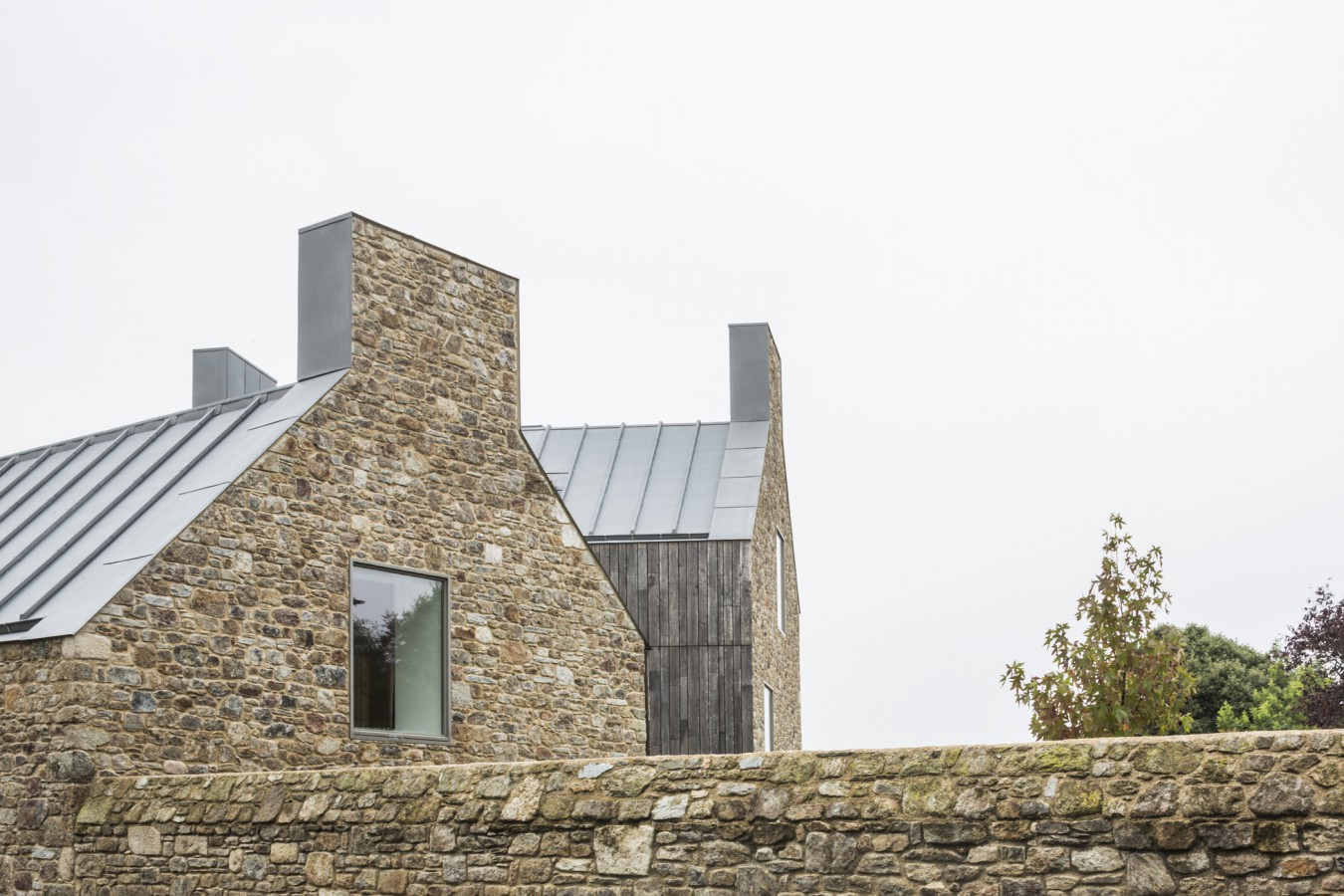 The roof is zinc quartz treated to be closer to the local slate colour.