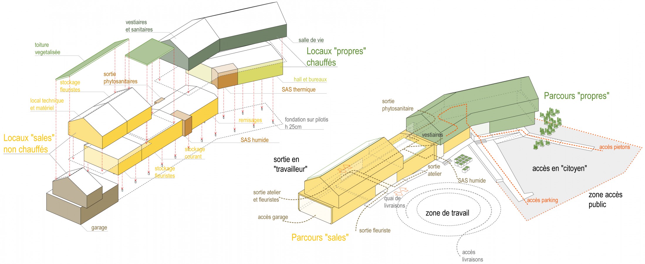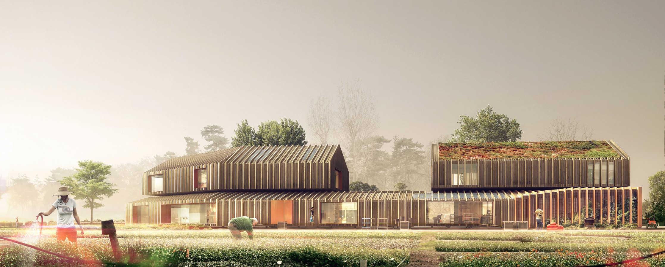 Bois de Boulogne, France | functional building at nursery garden of Longchamp, closed competition | 2013 | City of Paris | 1,6 M € | 700 m² | with Evp, Cferm, Forgue, Arene