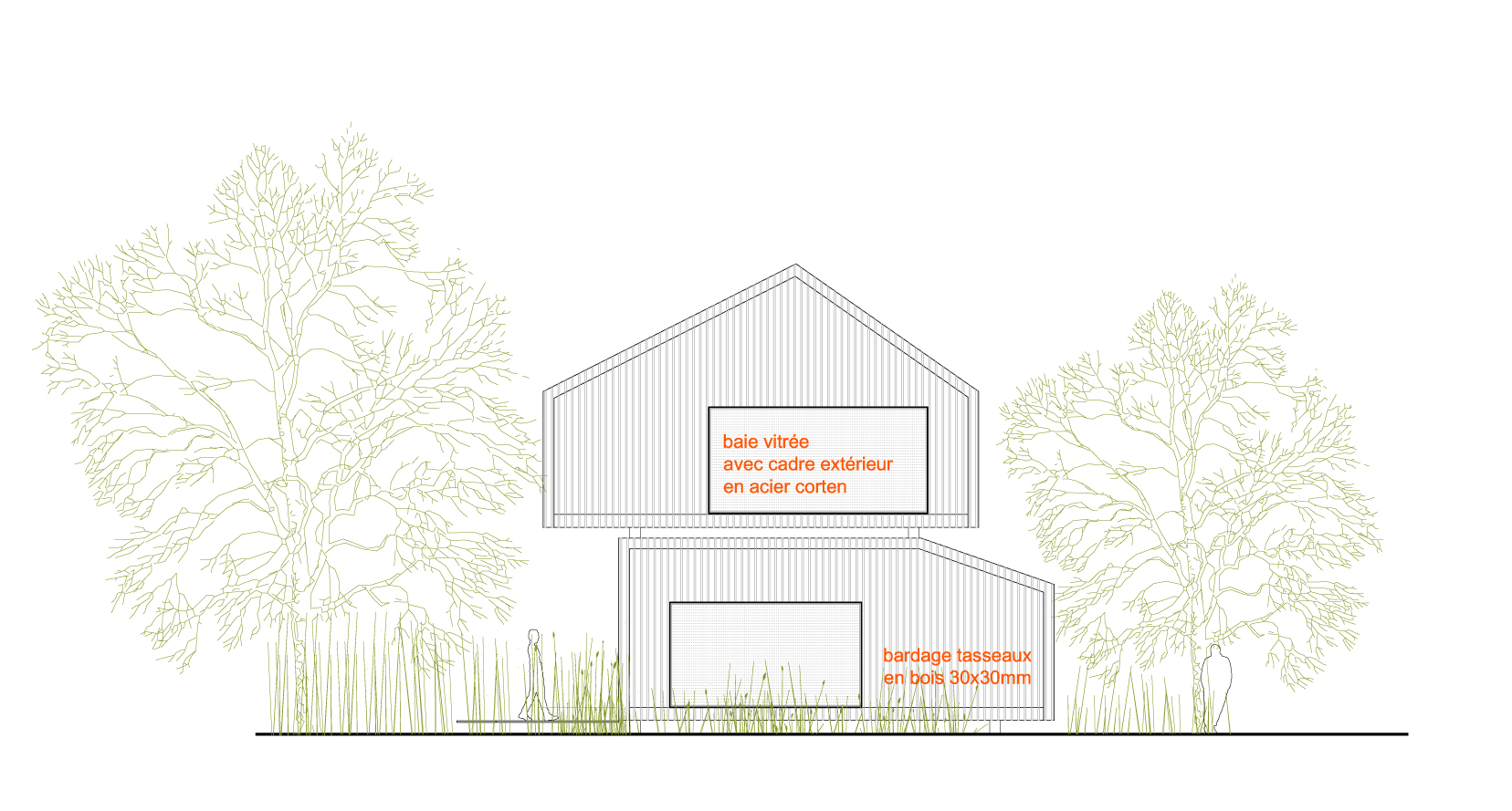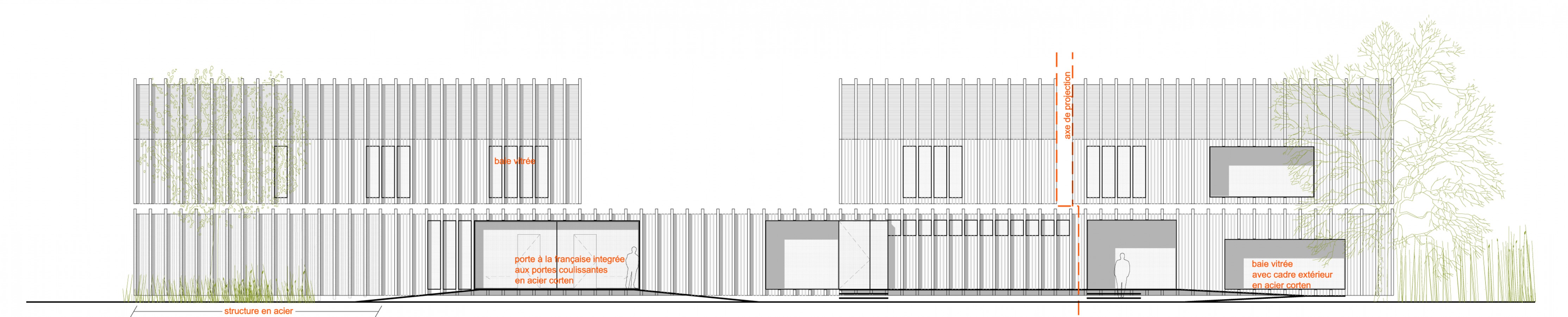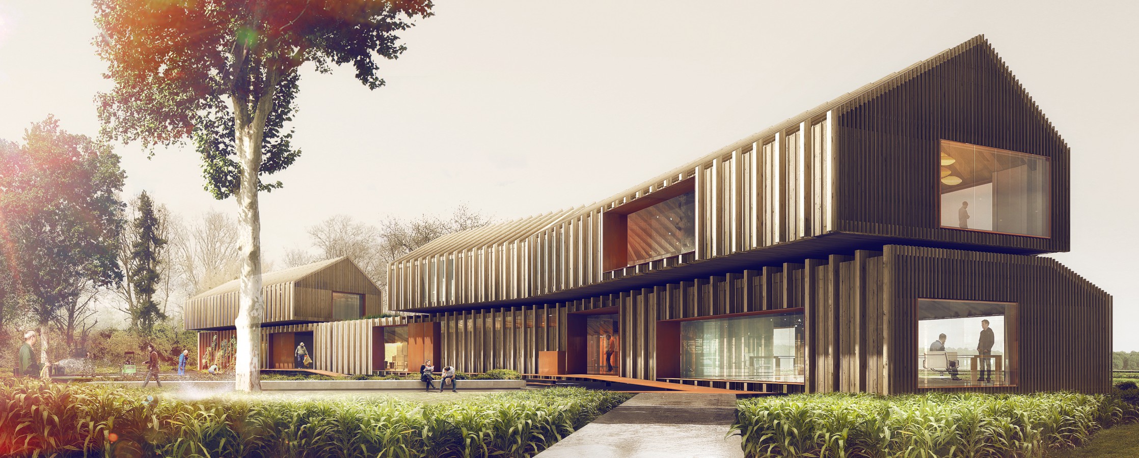 The extraordinary set of the Nursery Garden of Longchamp in Bois de Boulogne calls for a delicate architectural and landscape answer. The building is conceived as a dry process framework, a simple shape and pitched roof that integrates in the site without imposing itself. It recalls traditional buildings, surrounded by vegetation in the woods of Northern Europe.