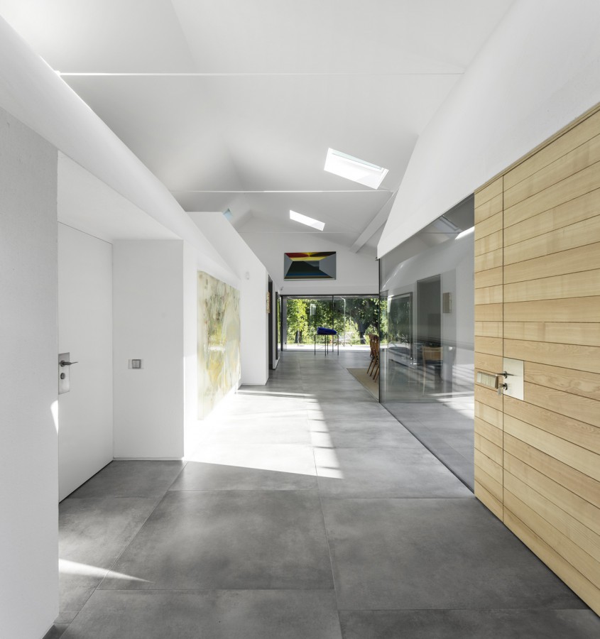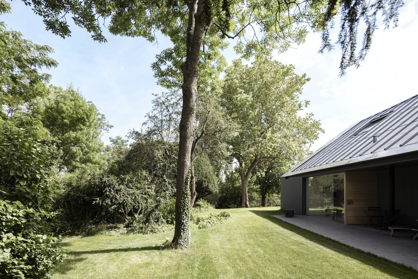 The new house is set in order to maintain the volumetric balance between the existing buildings on the west side of the courtyard: façade proportions, height and materials are translated from the facing building. New house is a contemporary architecture shaped from traditional habitat. The pitched metallic roof is asymmetrically designed in order to dialogue with the courtyard on the west and to recall the demolished building on east side.